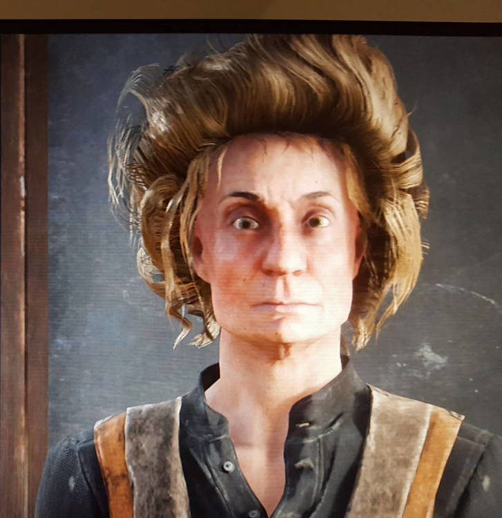 Obligatory "Post your Creature-I mean Character" thread, anyone? Man, I was appalled when I saw the default "Granny" offered to me. I tried my best to make her look like "sort of" Me at the ripe age of 29, but daaamn, there's some Neanderthal-looking ladies options. And no option to pick separate eyebrows or eye colours? Your eyebrows are tied to the brow bone width, and even the "Narrow" option has a massively round head at the top. Pic incoming of my completed Character... If you visit a Barber, you can get nicer hair styles and not look like you fell out of the hayloft. I got excited to see "Dentistry" offered at the Barber, so I was gonna get me some pearly whites instead of my piss-brown "Chompers" but NOOOPE, you can only choose the exact same options you first get, except the really nasty ones are super expensive!3 points