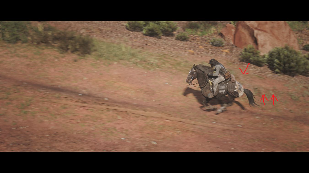 From the xbox one x (no spoilers, just using the tool): I was riding full speed and noticed a trail behind me (mentioned before). You can kind of see it in the second picture, but it was WAY worse than it appears. I could literally see 3-4 copies of me in the trail. Regardless of that, the amount of blur in these screenshots is ridiculous. I guess that's to make it run more smoothly? Edit: I guess I never really noticed it because I didn't use cinematic mode too often. When I did, I wasn't paying attention to the tv.1 point
