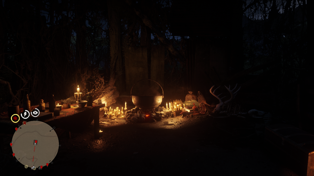 Inbetween "Veterans homestead" and the "Wapiti reservation" I found "Witches Cauldron" a small shrine like place, with a strange liquid brewing in it. I drank from it, hoping it may be "The cure" ... I don't know what it did, if anything. I'm midway through chapter 6, so I thought what could it hurt. Anyway, just wanted to mention it. I've not bothered looking it up to see what anyone's said about it. ... back to gaming.1 point