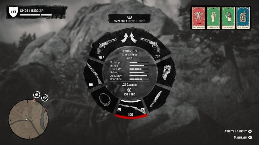 Me personally, I run with a Bolt Action for long ranges, a Lancaster for mid ranges, a Schofield for mid-short ranges, and a Sawed Off in my off hand holster just in case. Works like a charm. Haven't had any major problems so far. Also, by getting different ammo types, if I run out of rifle ammo I can switch to the Lancaster in a pinch. I use the bolt cause it's fairly cheap and I see no reason to upgrade to a different gun at the moment.1 point