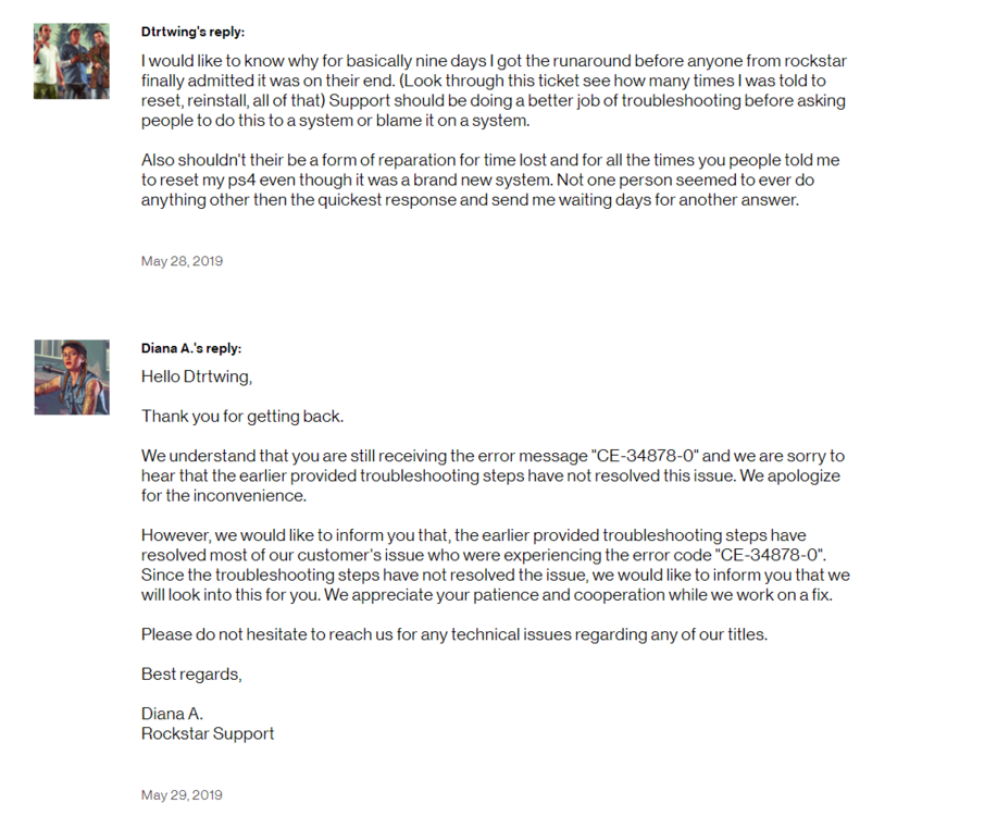 Fyi.... Tier 2 Support reached out to me today to see if my "CE" issues have been resolved since the latest update. I let him know all seems to be well now with those of us here who have been affected by this. I also provided him a link to the thread. Thanks again to @Moosh89 for creating the thread and to all who participated. After a couple good, long sessions under my belt with no blue-screen crashes and confirmation from R* that they had addressed the issue, I'm confident that I can put this behind me for now. If anyone is still having this specific problem please let the group know. Thanks again folks.1 point