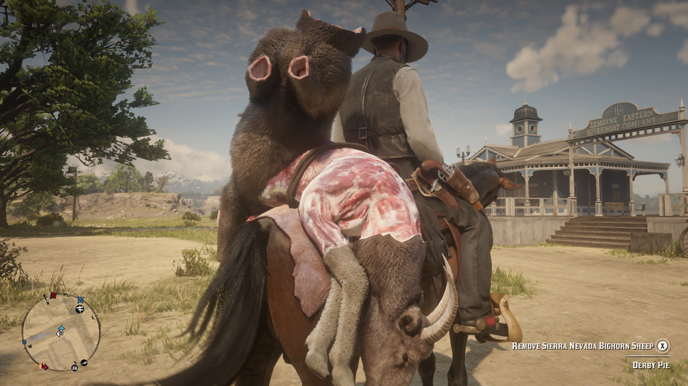 Well, since I started playing again I've seen a few bugs that don't affect the game but look really silly. So I figured I'd show what I have and see if others are finding other amusing pieces of miss-coding. Posse leader's horse grew a human torso... Same leader also acquired his very own pelt Halloween costume... My horse got it's tail docked... (But also proof R* know their horse anatomy.) And I came across a burning glowing bush..2 points