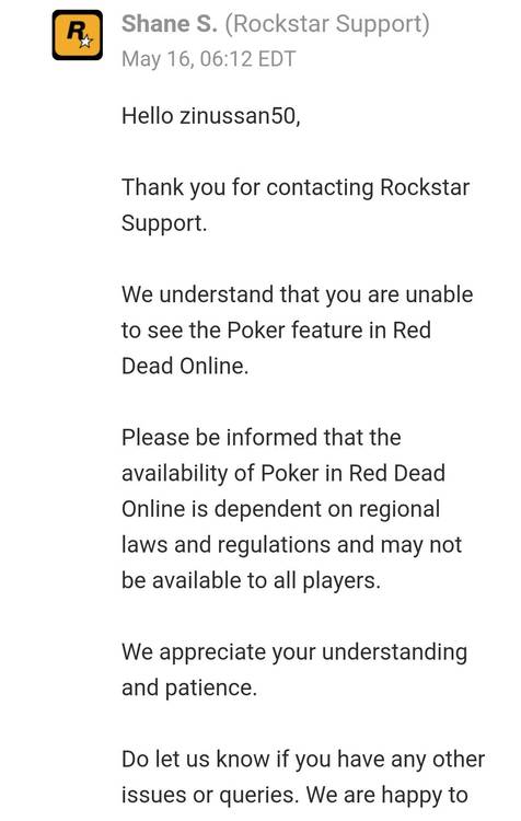 I did contact rockstar about banned from poker, providing them my current location. They reply it is unavailable for my region(not country). Dont understand why in-game money cant be use to play poker. But in astonishing twist, i am able to access all gambling in gta online casino. While the game allowed to use real money to buy chips for gambling. -