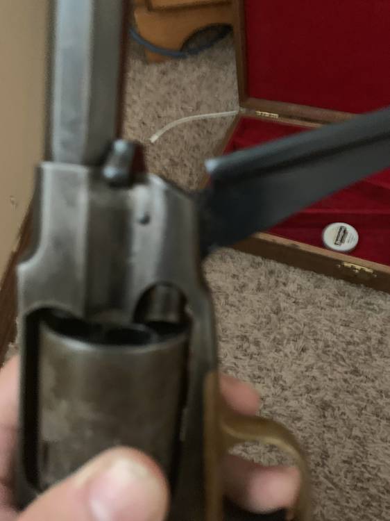 Well, this isn’t a LeMat, but the principal is similar (only it’s a six shooter without a little front stuffer shotgun). You can see the cutout in the side that allows you to drop in your powder charge, wad, ball etc... the. As you rotate the cylinder there is a lever built in that allows you to pack it all down. Then just add primer caps to the back nipples.... sorry, not sure why the pictures are blurry