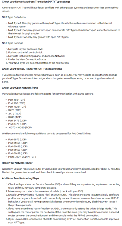 There's a secondary resource on R*'s website, which troubleshoots router issues in a bit more detail: What helped me stabilize was activating UPnP. It didn't eliminate the disconnects entirely, but the connection is definitely more stabilized than it was. I have a combination Modem/Router, so short of running an ethernet cable, it's the best I'm going to get.