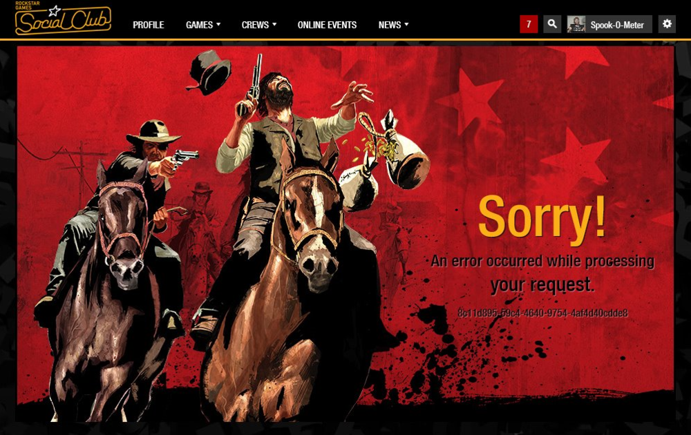 I made my Crew back in 2012 for Max Payne 3 and because I enjoyed messing around with the Emblem Editor, I still use it these days for GTA Online and publishing Emblems. https://socialclub.rockstargames.com/crew/pool_sharks The error image appears to be a mashup of some artwork for Red Dead Redemption and filtered screenshots. The artwork in the foreground was used to promote Grab The Bag and RDR Multiplayer Rockstar Events, the faint background image looks like a red filtered version of a screenshot I've seen before that shows Deputy Jonah, John Marston and Marshall Leigh Johnson but John Marston is covered by the artwork in the foreground.