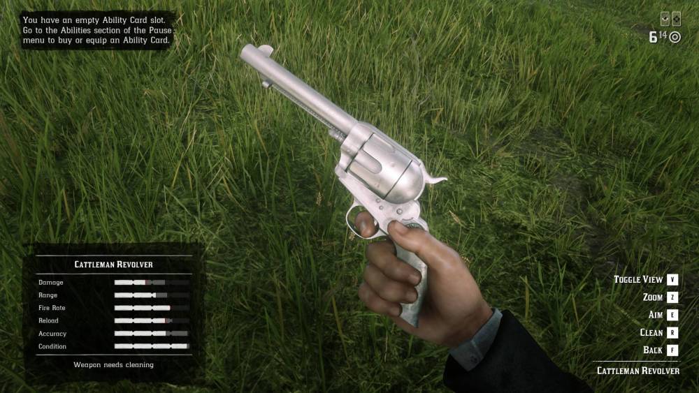 I'm having problems with the customization of the Cattlemen revolvers on PC. After customizing my Lemat revolvers with silver and gold with full engravings which came out nice and shinny, I added pearl grips to one of my Cattleman revolvers and made all exterior medals silver, however the gun just will not shine.
