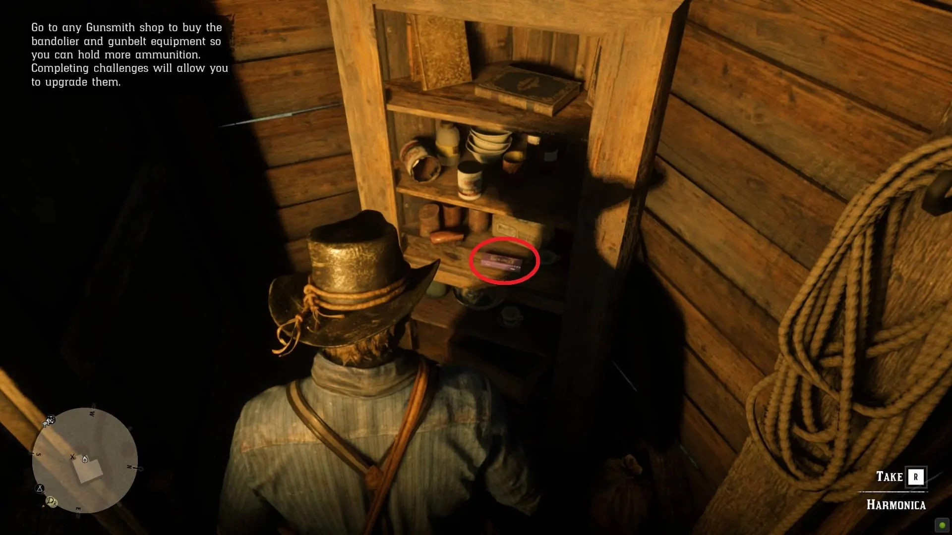 Sadie asks Arthur to bring her a unique item, the Harmonica. The item can be found inside Emmet Granger’s farm, which is located to the southeast of Flatneck Station. You already visited this location if you completed The Noblest of Man, and a Woman stranger mission. Sadie will give you Gun Oil for fulfilling her request. You will also get a small Honor boost.