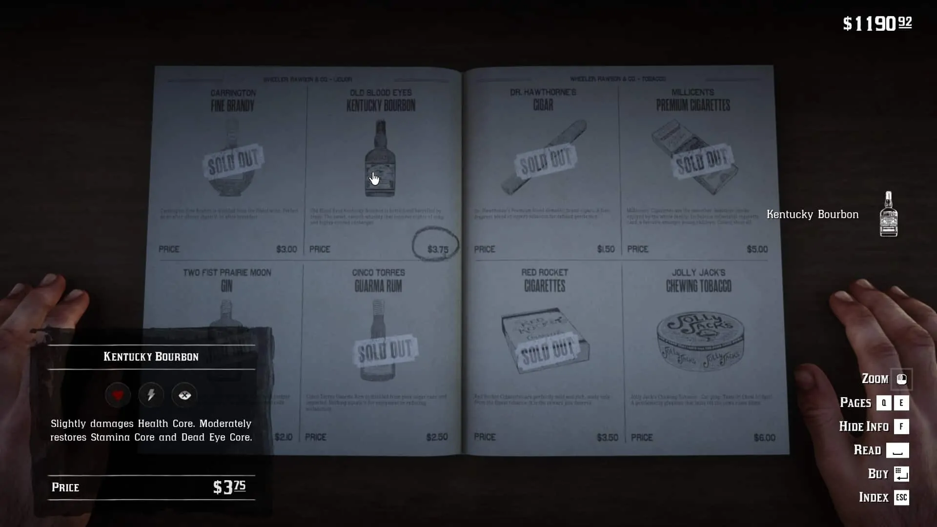 Sean will ask Arthur to bring him some Kentucky Bourbon. This is an extremely common item that can be bought in general stores. Sean will give you a Fire Bottle for it. You will also get a small Honor boost.