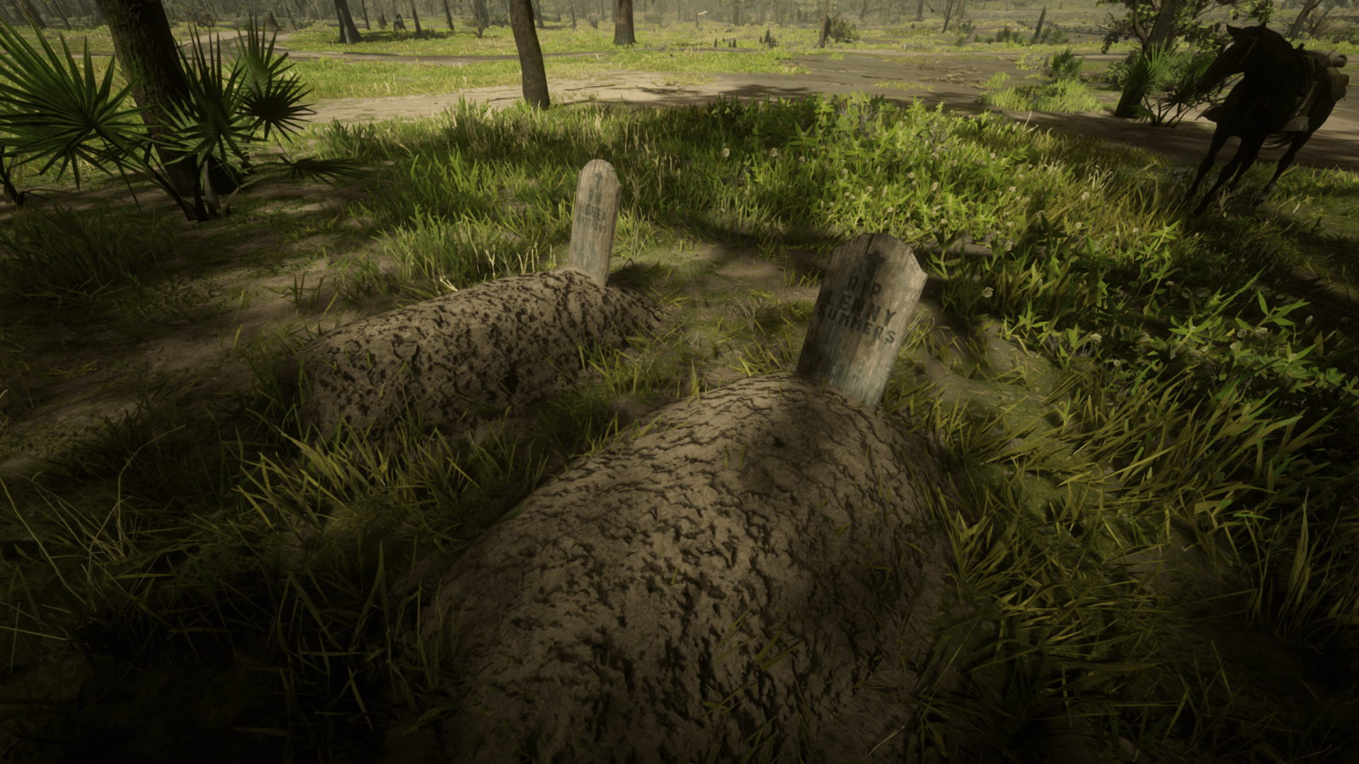 These two Grave Sites can only be found during the Epilogue. They are located to the north of the “A” of the Bayou Nwa writing on the map. Finding all grave sites also unlocks a trophy/achievement.