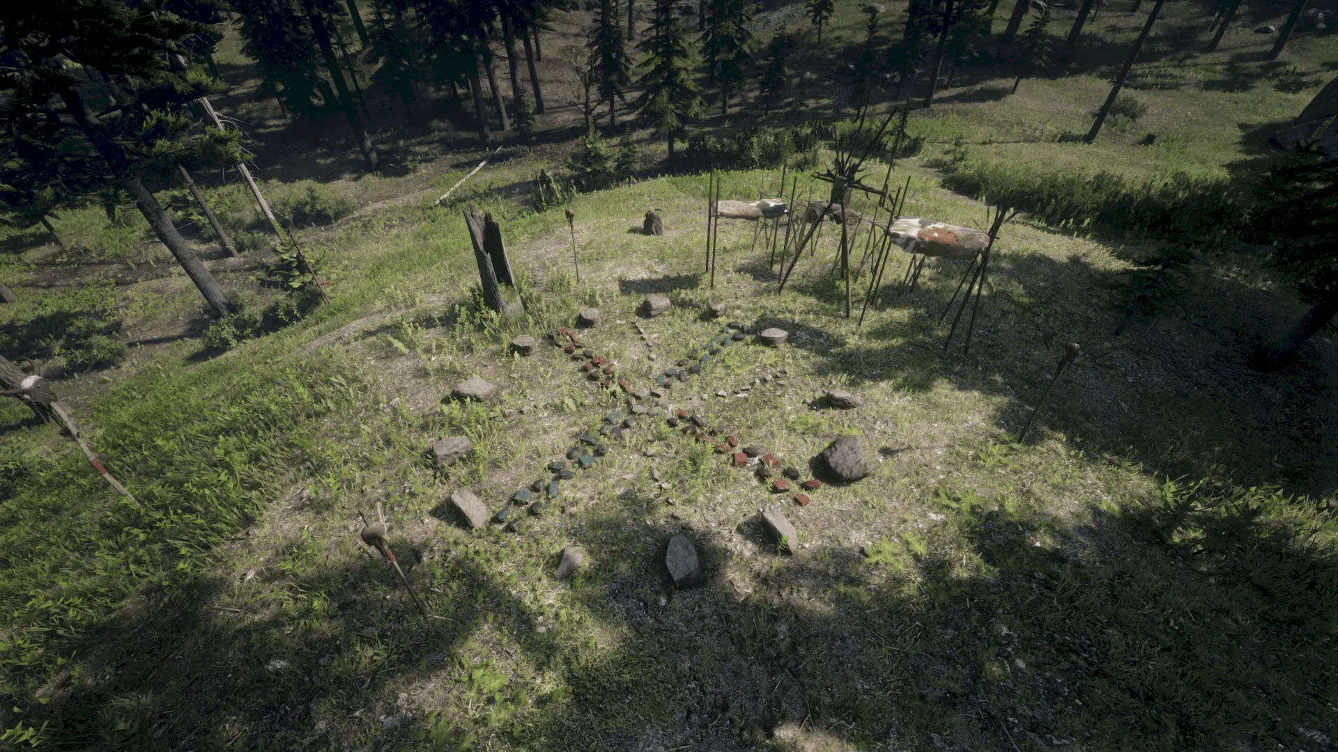The Native Burial can be found to the south of the “B” in Big Valley and to the north of Owanjilla Lake. The grave is located in the center of a clearing surrounded by trees and it’s not too difficult to spot.