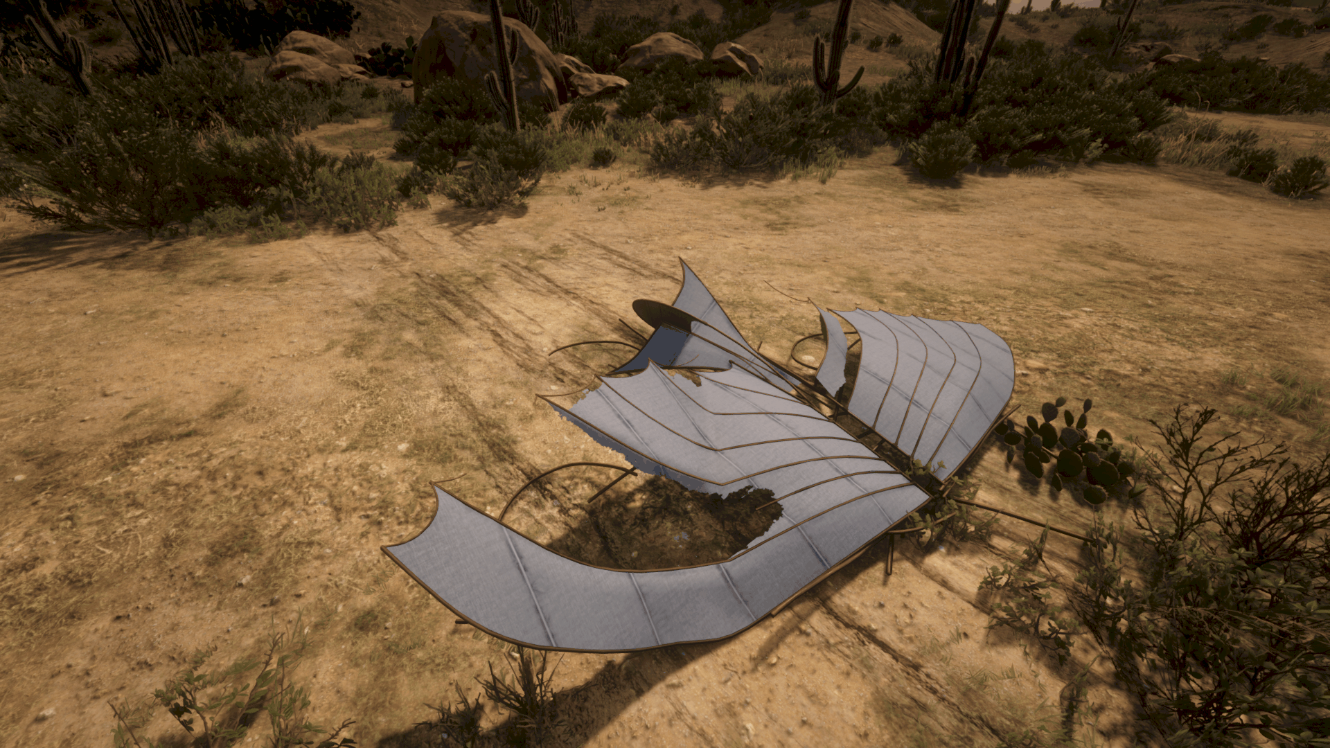 The Flying Machine point of interest can be found right to the south of the “P” in Cholla Springs on the map, to the west Armadillo. The point of interest is found very close to the road to the south.