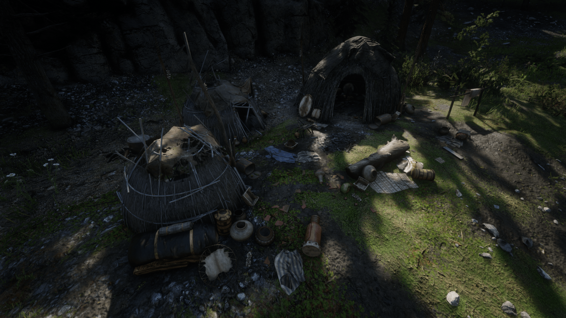 The Wickiup camp can be found near Aurora Basin, to the west of the Tall Trees writing on the map. Head to the southwestern corner of the basin to find the remains of the camp.