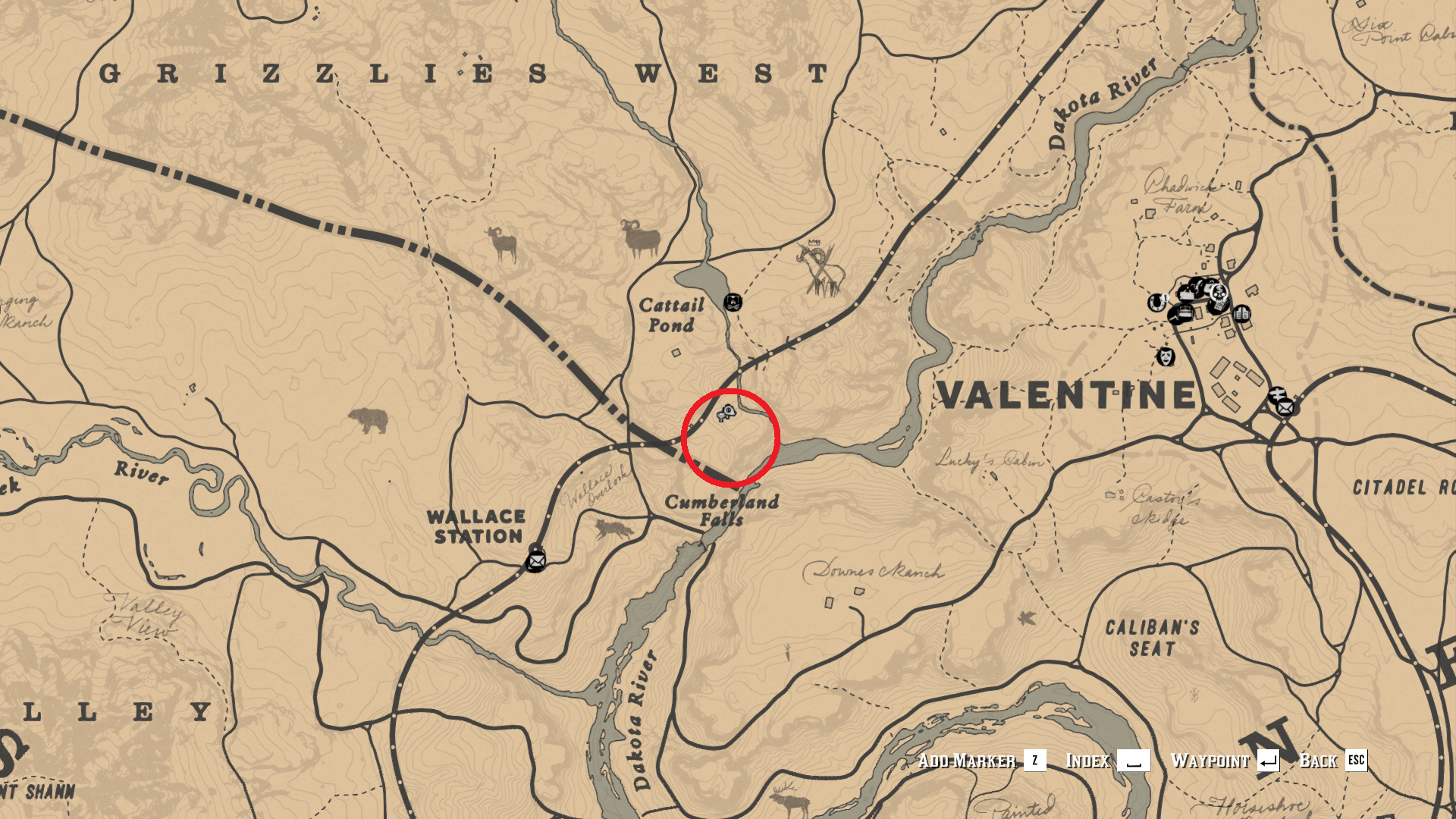 Perfect ram are mostly in mountainous areas. One such area is near the Cattail Pond where you also find a legendary ram. You need to look for the ram just above the name “Cumberland falls” on the map and just south of Cattail Pond. There is an open area by the railway track where a herd of bighorn ram and sheep gathers. If you don’t see any then set up a camp nearby, sleep a couple of times, save and reload your game. A 3-star ram will eventually appear.
