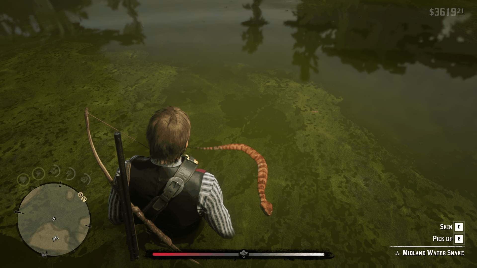 Snakes can be found in several different areas, but the best one is near the road going from Saint Denis to the Van Horn Trading Post and Annesburg. You will need to flush them out, though, so use predator bait to make things easier. Another east way to get a perfect snake skin is to head over to the swamps north of Saint Denis and look for water snakes in the swamps. The regular snakes are quite difficult to come by but this method is highly effective. You can head over to Lagras and find 3-star perfect snakes in the water. Be patient with them and use bow with small game arrows to kill them. Always go for a headshot or else the skin is going to get ruined and turn into a 1-star skin.