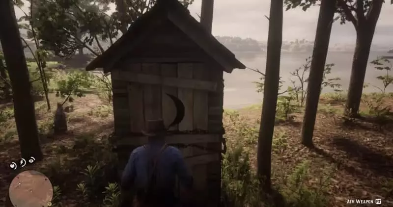 Near the shoreline southwest of Braithwaite Manor, there is a small outhouse that is chain locked with a crazy woman inside. After inspecting the woman inside, Arthur will add this to his journal as well.
