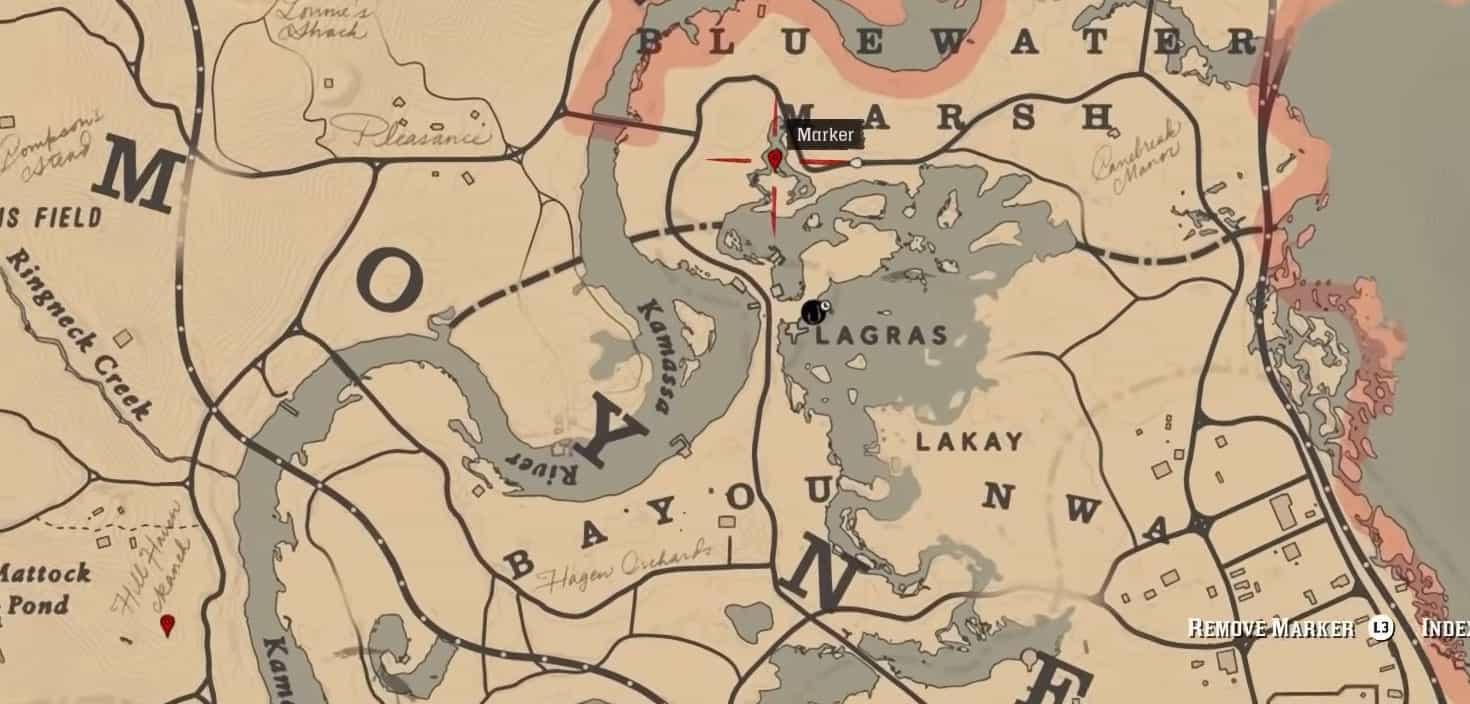 This creepy easter egg can be found north of Lagras just below the letter L in Bluewater Marsh on the map. When you get there at night, you’ll hear the voice of the lady ghost and your horse will become uneasy and might buck you off. You can see the ghost with a binoculars from afar.